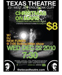 Christmas in Mars notoriously took years longer than expected to finish, but since its 2008 release it has become a Christmas cult classic. It was broadcasted by the Sundance channel on Christmas in both 2008 and 2009, and in 2010 it was presented at the historic Texas Theatre on December 22nd with a special Q & A with co-director Bradley Beesley (in-person) and Wayne Coyne (via phone).