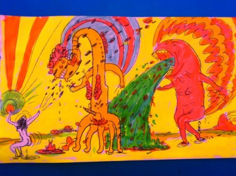 This is the type of the music to let wash over you as you relish the sounds within (like a hiker stopping to smell exotic plants or an art-goer examining the exact colors in the strokes that collectively make-up an abstract painting). That said, I will attempt to provide some vague idea of what the EP sounds like by outlining “Snail Razor Panther Mind”. Over 27 minutes of psych textures, electronic noises, audio collage loops, and guitar sounds, “Snail Razor” has a conventional rock song (relatively speaking!) hidden in its middle. The center tune kicks in shortly after the twelve minute mark and about two minutes later the drums drop out as it collapses into a beautiful, lush (yet sonically edgey) psych exploration. The remainder of the track gradually builds up from wind-like noise to a wall of guitars. This EP is recommended for fans of noise psych, avant rock and The Flaming Lips recent work (especially the Prefuse 73 EP, which he personally pressed one-by-one).