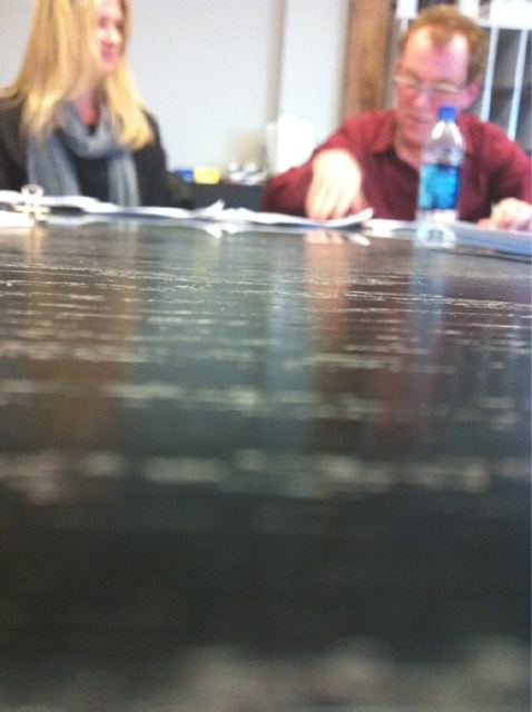 2007’s WGA Writers’ Strike allegedly interrupted planning, and for a couple of years not much was spoken about its development. It appeared to have come to a standstill until spring 2010 when news resurfaced via Spinner and other sources (i.e. this and this and this). That November Wayne had further talks with Des (pictured above) – which he mentioned on twitter (above left, with the photo below). On February 24, 2011, Wayne updated to his followers in a now deleted tweet, “Dez does another read through for WB staff in Burbank …Yoshimi on Broadway..”
