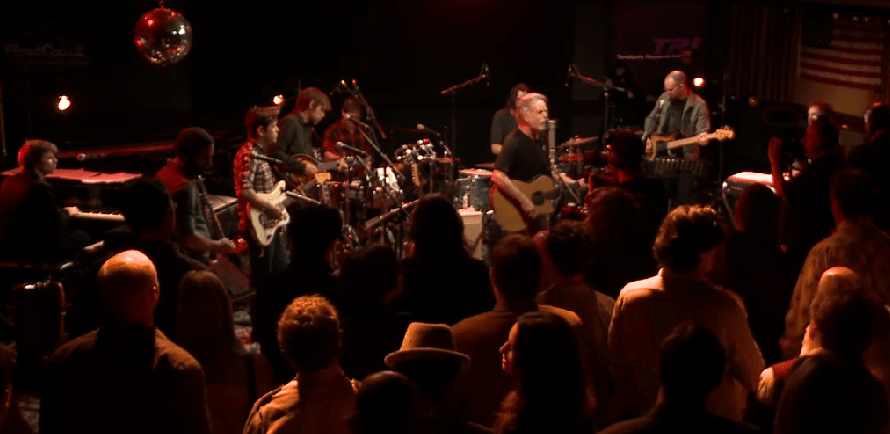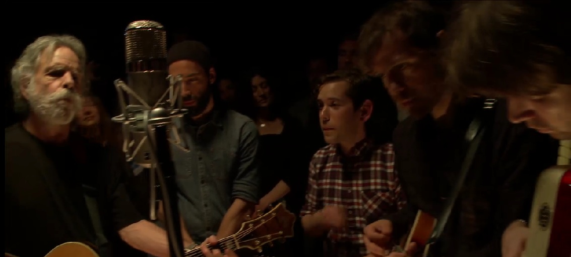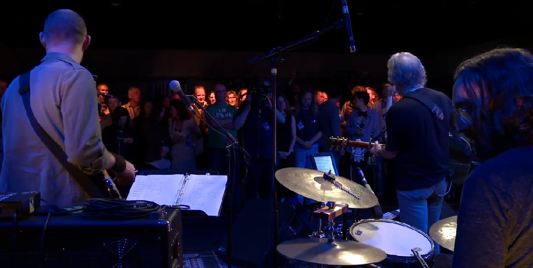 But that’s not all. A mini-acoustic set with all the musicians circled around a single microphone closed the performance: “Ripple,” “Uncle John’s Band,” “Broke-down Palace.” The entire set streamed for free at tristudios.com and music.yahoo.com… with a live party projection at Brooklyn’s Littlefield NYC.