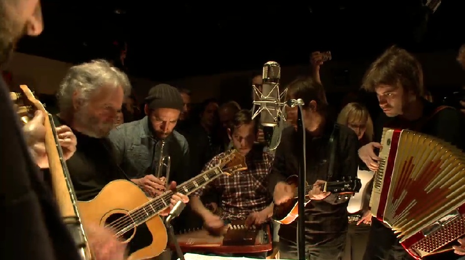 Members of The National, The Walkmen and Future Heart favs Yellowbirds played in front of a small audience tonight at Bob Weir’s TRI Studios – with the Grateful Dead/ Furthur/ RatDog singer/ guitarist. Produced by HeadCount, the performance was a voter education event including a political discussion in between sets.