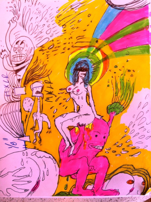 Side two of the Flaming Lips with Heady Fwends forthcoming collaborative double LP ends with “That Ain’t My Trip” and “You, Man? Human?” The former – which went under the working title “It’s Not My Trip (Hippy Goes Out with Violent S&M Vampire Gal)” – features My Morning Jacket’s Jim James. The latter – with Nick Cave – was formerly known as “Violent Vampire Goes Out With Underage Alien Lifeguard Gal.” Are these two parts of the same wacked vampire love story??!