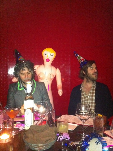 Colton – pictured above with “Lindsay Blow-han” at Wayne’s last birthday dinner – has been helping the Lips record recently and has worked on new music with Wayne – such as the song from this past February about a suicidal kid that loved peanut-butter, and a M. Ward-esque track in March…