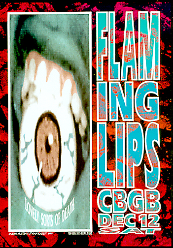 Most of the summer of ’92 the Lips were off, but Hit to Death was finally released on August 11th and they celebrated with a show that night at Oklahoma City’s Rock City Cafe. It wasn’t until October 13th though that the tour in support of the album truly began: with the Peel session that day followed by two London shows the following night and then two-mini-legs of a fall tour revolving around the Philadelphia/ New York region (in late October/ early November from Philly to Boulder, mostly opening for Throwing Muses; and on their own in late November/ early December back through the North East, ending with their sole documented show at CBGBs).
