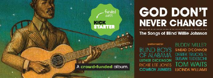 Now these songs and more will be interpreted once more by a range of artists for a 2012 tribute album, God Don’t Never Change:The Songs of Blind Willie Johnson. The crowd-funded album is a project of Jeffrey Gaskill (producer of Gotta Serve Somebody: The Gospel Songs of Bob Dylan) and is seeking support via this Kickstarter campaign.[UPDATE – The fundraiser is completed and was a success]. The confirmed tracks on the album are listed below, not in the order they’ll appear on the album though: