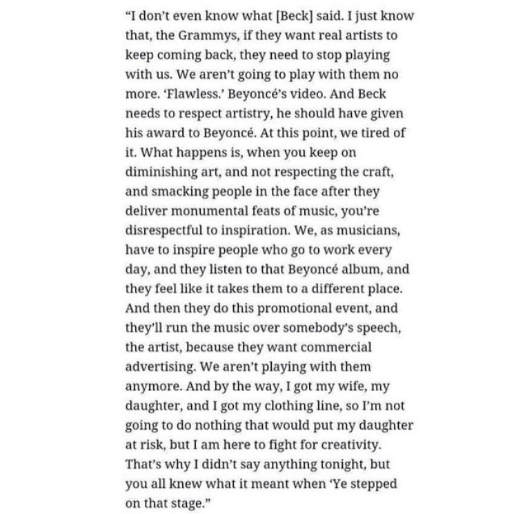 Initially assumed to be a joke, Ye explained why he stepped on that stage in an interview with E! immediately following the ceremony: