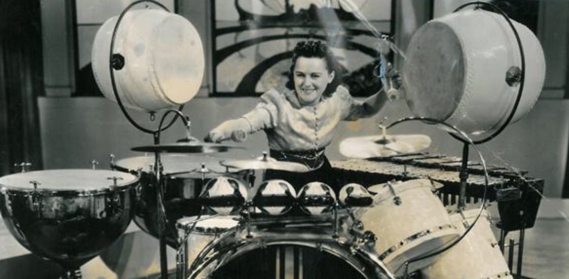 Viola was born in Mount Calvary, Wisconsin, the eight of ten children. Her father encouraged them all to be musical and established a family orchestra with his eight daughters – known as the Schmidt Sisters – to play the restaurant/dance hall he owned. How did she come to start on drums? “I was the sixth girl,” she explained in 2012 to Zildjian. “My dad dictated the choice of instruments in the family.”