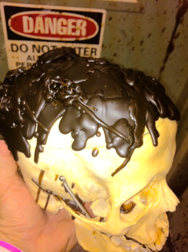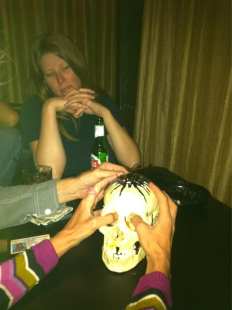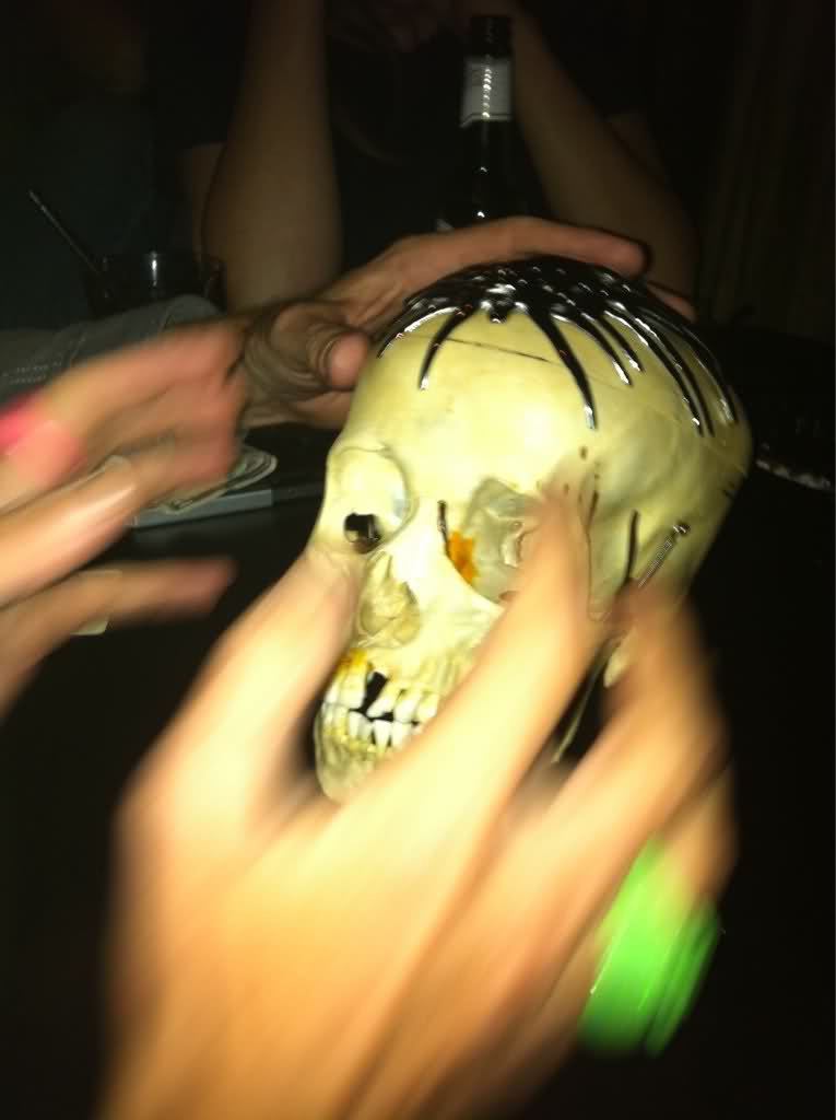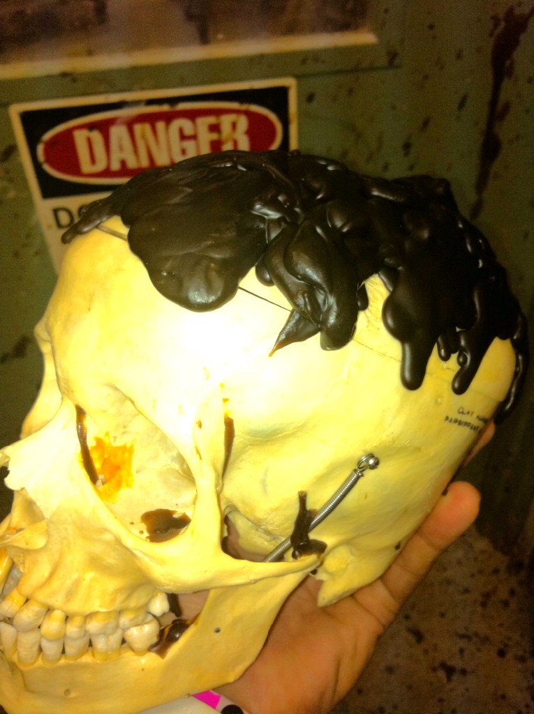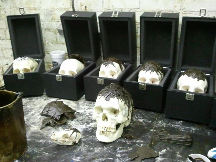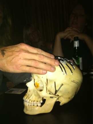 On the morning of September 30th Flaming Lips’ sidekick and Womb gallery curator Jake Harms posted the below photo on facebook, commenting “Doing cool stuff with real human skulls!!” Wayne Coyne tweeted pictures that afternoon of the skulls getting chrome applied: