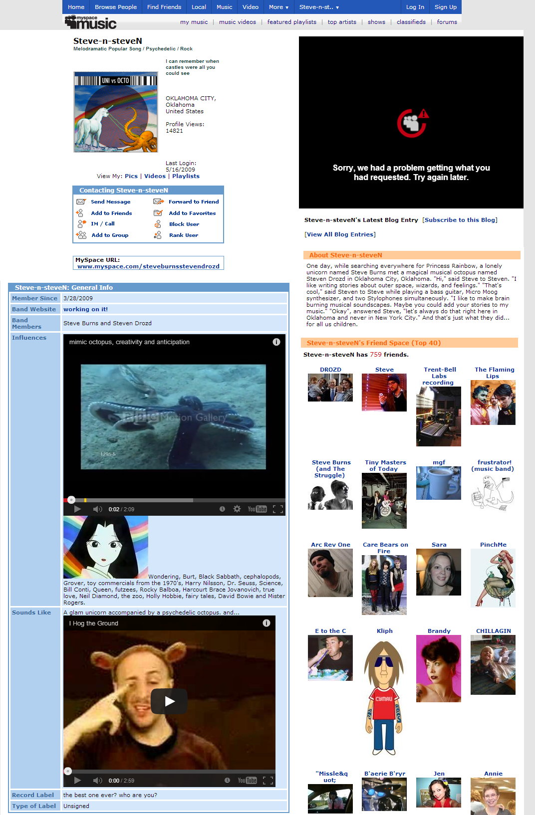 Steve-n-steveN MySpace Page – Spring 2009 Share this:Tweet Click to share on Reddit (Opens in new window) Reddit Share on Tumblr Click to share on WhatsApp (Opens in new window) WhatsApp Click to email a link to a friend (Opens in new window) Email Like Loading...