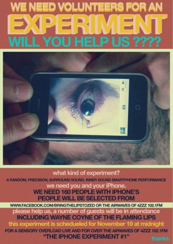 The 160 fans were selected as iPhone participants from those who “like”-ed facebook/bringthelipstozed and won a variety of social media promotional competitions (i.e. subscribing to 4zzzfm.org.au, commenting at this facebook post on “7 Skies H3”, aka the 24 hour song, etc). On Wednesday, November 2nd the first participant was announced on the air – along with news that experimental musicians PVT will be an additional guest “conductor” organizing the 160 iPhone users. Other winners were also posted at facebook/bringthelipstozed. The station gifted “Wayne a copy of our petition with the names and comments of all our loyal signers!”